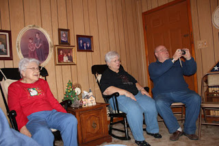 We have a tradition that we go around the room and each pick a Christmas song to sing before we can open presents. We've done this for YEARS! So, here we go with Granny, Mom and Dad...