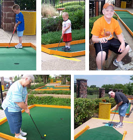 Then Friday morning after breakfast, we all went to play Putt-Putt. Mom and Dad took the kids on a round with them...